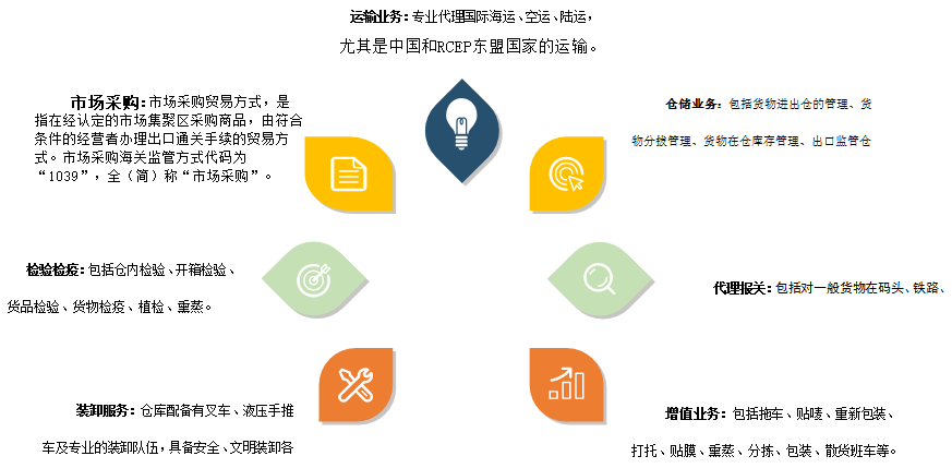 1.平台优势:集合国际海运、铁运服务平台,保税物流仓储联动平台,物流信息平台,贸易展示平台于一体,针对RCEP国家的运输痛点,为大中型制造企业量身定制的国际供应链服务。